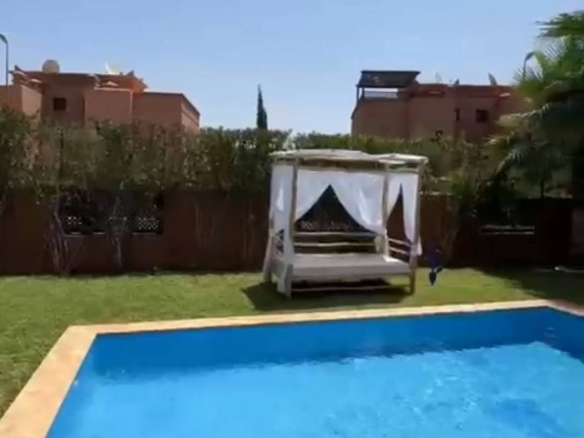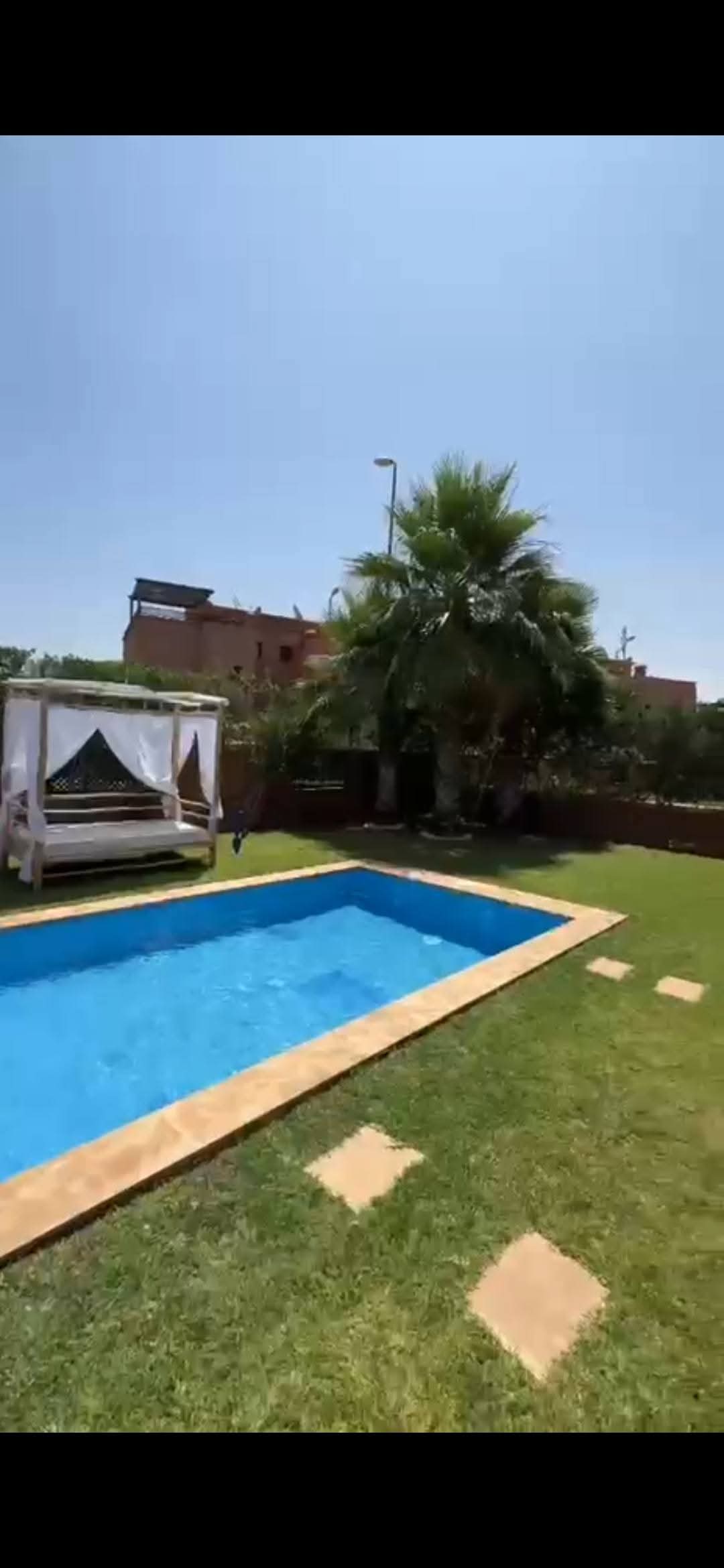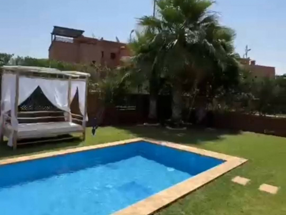 Elle se compose de 3 chambres lumineuses, d’un salon convivial, d’une piscine privée, d’une terrasse ensoleillée et d’un magnifique jardin paysager, parfait pour profiter du climat doux de Marrakech.
